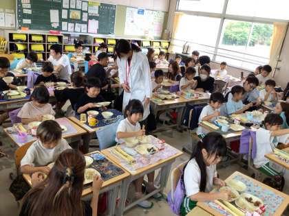 今日の献立にはレバーが使われていました。家庭ではなかなかでない食材ですが、子どもたちにとって好評。保護者も完食でした。
