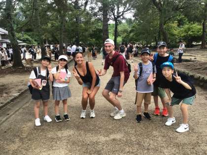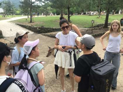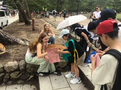 班別行動では、外国語で学んだことをいかし、外国の方とコミュニケーションをとっています。
