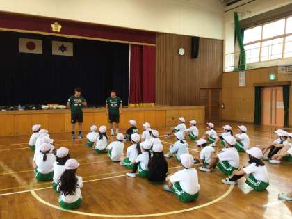 トヨタヴェルブリッツの方にタグラグビーを教えてもらいました。