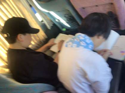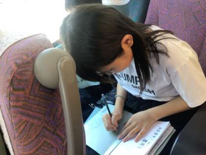 修学旅行の振り返りをしています。
