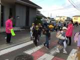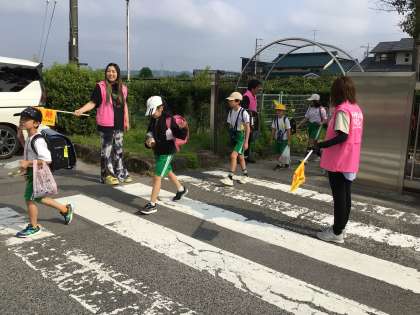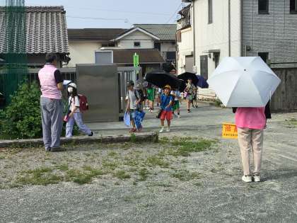 暑い朝でした。少しバテ気味の子どもたち。あいさつも小さめでした。