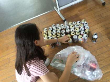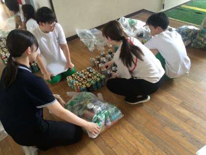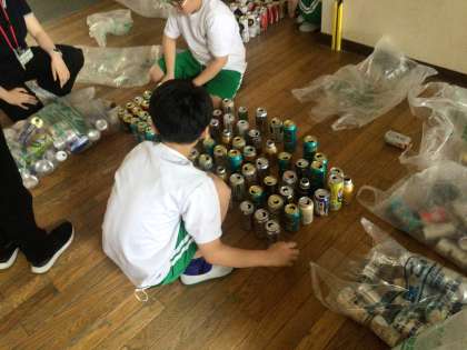 環境委員の人たちが、アルミ缶を集計しています。責任感あふれる姿は立派です。そして、アルミ缶回収に協力してくれた人、ありがとう!