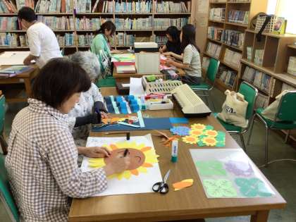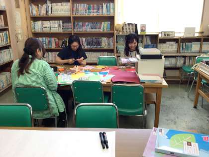 夏のバージョンから衣替えです。メンバーも増えて、大きな作品が製作されていました。9月の参観日にご覧ください。夏休み中も活動します。ご一緒にいかがですか。