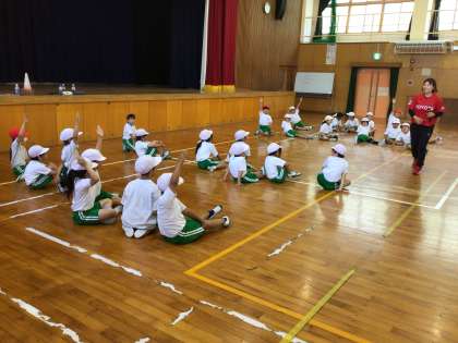 教室後の感想で、「たくさん教えてもらって、遠くまで飛んだので嬉しかったです。」と話してくれました。また、「どうして遠くまで投げられるのですか。」と質問をした子どもに、「目標をもって練習したり、身体を大きくしたからだよ。」と答えていただきました。