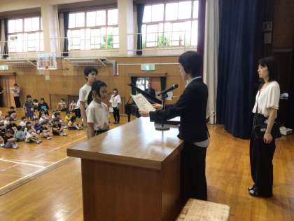 四郷賞や読書感想文、生活作文、詩の表彰を行いました。