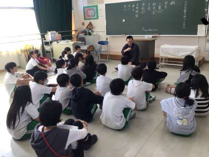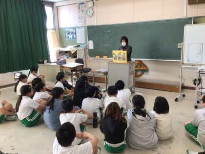 読み聞かせボランティアの方に来ていただき、読み聞かせを行いました。写真は高学年の様子です。特色ある学校づくり推進事業のひとつとして、今後も実施していきます。