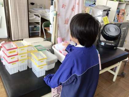 1.2年生は担任の先生がフッ化物洗口液を配ってくれます。保健係は保健室にきて、片付けのうちの、容器の分解、種類分けの仕事も担ってくれています。11月8日は「いいはの日」です。いつもより、歯を大切にしましょう。