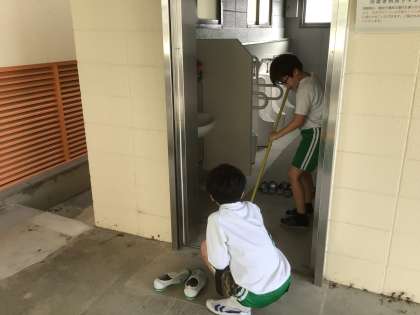 5年生はトイレや昇降口の掃除、運動場の整地をがんばってくれました。縁の下の力持ちです。