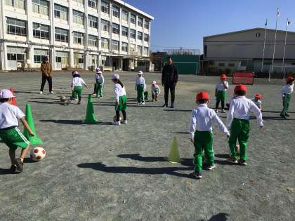 昨日、名古屋グランパスの方々が来てくださり、サッカーを教えていただきました。どの子もいきいきと、楽しそうに活動していました。