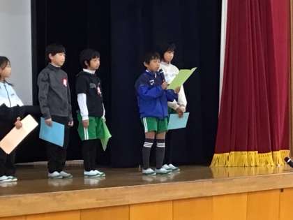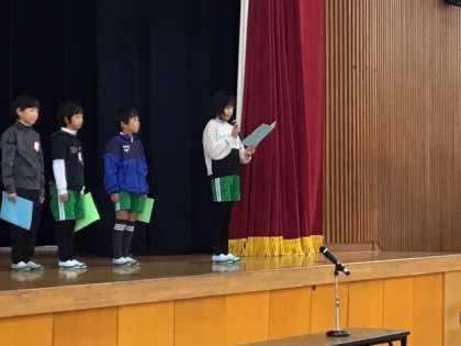 人権週間に合わせて、人権について全校で考えました。初めに、校長先生がお話をし、各学年の代表者がそれぞれ道徳の時間に考えたことや、自分が作った標語を発表しました。