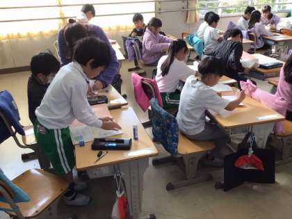 にこにこしごうの日(SST)の時間に、「よいところみつけ」を全校で行いました。相手の良いところを書き、愛情を込めた言葉を添えて用紙を友だちに渡したり、良いところを書いてまわったりして、全員が自分の良いところを誰かしらに見つけてもらいました。1年生の様子です。隣の子の良いところを書き、伝えられていました。良いところを見つけてもらって、みんなニコニコ。1組では初めてファミリーデーブックののり付けに挑戦。綺麗に手アイロンをかけて貼れました。