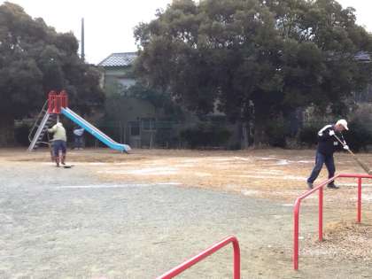 今日は大量の落ち葉清掃と運動場に凍結防止剤の散布をしていただきました。落ち葉は90リットルのごみ袋が15こも集まりました。美しくなった校庭や駐車場。年末年始を迎える準備ができました。いつも本当にありがとうございます。