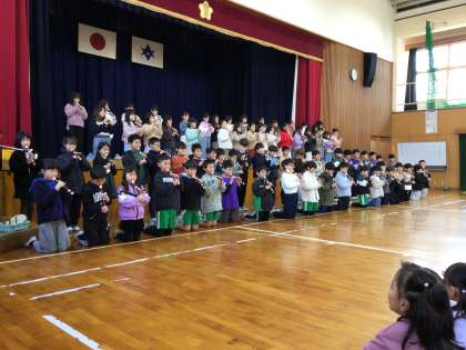 3年生は「あの雲のように」「ジングルベル」をリコーダーで演奏しました。