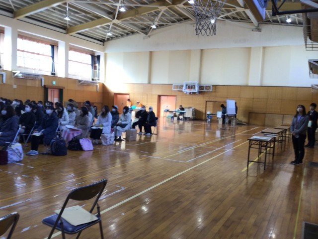 来年度の1年生の保護者に向けて説明会を開きました。学校生活や保健関係、集金などお話ししました。物品販売もあり、両手いっぱいの荷物を持って帰っていました。