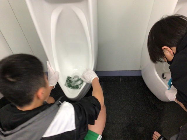 卒業式まで後10日になりました。6年生が26人のボランティアと共に、2時間、西トイレと体育館トイレを掃除してくれました。トイレ掃除に学び会の皆さんと東海学園大学の学生が一緒にやってくれました。掃除は手と頭を使う。掃除をすることで、気分がスッキリするから、自分の身の回りを整頓することは大事、とお話しされました。最後には6年生が卒業式の歌プレゼントをしました。きれいなトイレのまま卒業式を迎えられるように、全校に伝えていきます。本当にありがとうございました。