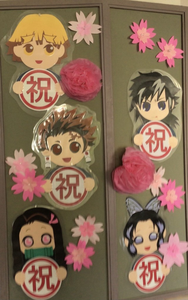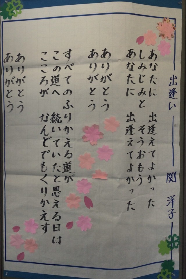卒業式、入学式に向けてのお祝い掲示です。校舎内至る所にお祝い飾りが。残り2週間。さみしいですね。