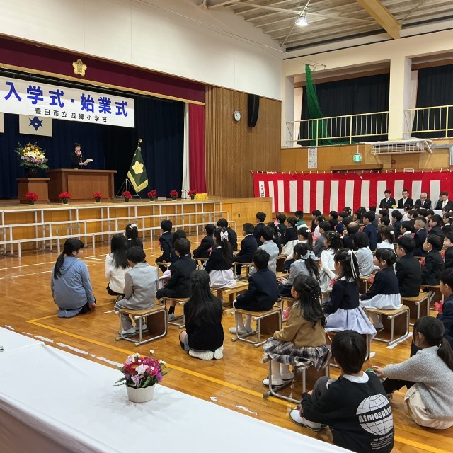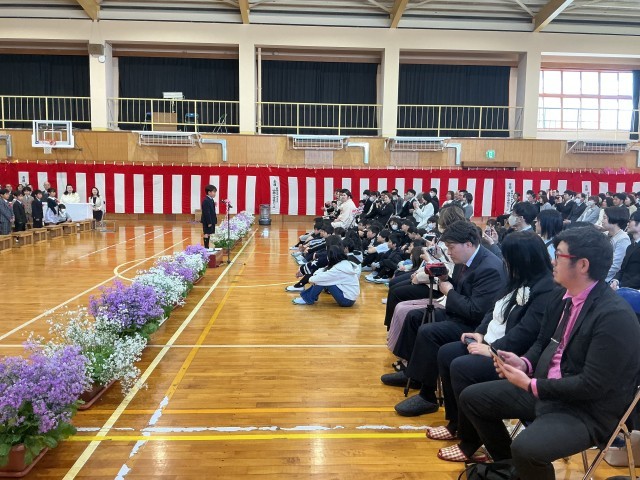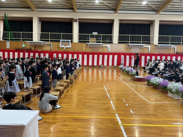 1年生は名前を呼ばれると元気な返事をしたり、校長先生や市議会議員、PTA会長さんの話をよく聞いたりする姿がありました。