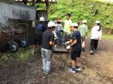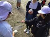 火おこしにチャレンジ! ついに火がつきました。 15分の時間制限の中、まいぎり式...