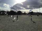 1年生が、自分で作った凧をあげて楽しみました。快晴の中、凧揚げに程よい風も吹き、...