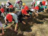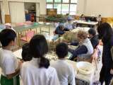 無門福祉会に出かけ、施設で働く方々の様子を見学した後、落花生の実を外す作業に参加...