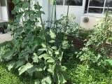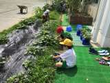 サツマイモの苗がすくすく育っています。(1.2年生)