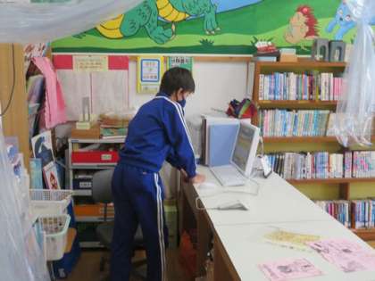 常時活動の委員会、子どもたちはがんばっています。給食の献立表、図書の当番活動、お昼の放送と子どもたちの輝く姿がたくさんあります。学校のために、みんなのためにがんばる敷島っ子たちです。