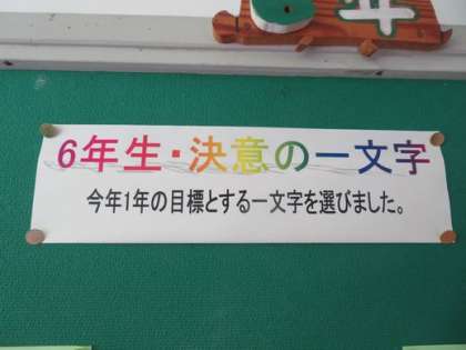 6年生が明日のオンライン新入生歓迎会のための予行練習をしていました。みんなで協力し合ってがんばっています。また、掲示板には「今年の決意の漢字」が掲示されています。6年生の「やるぞ」という気持ちが伝わってきます。