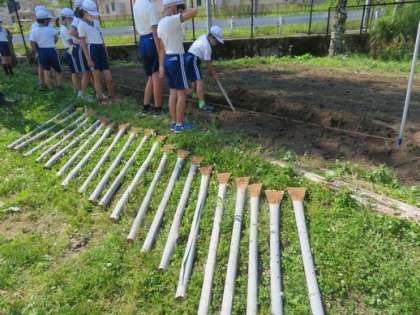 本日4年生の総合学習で地域講師を迎えて自然薯を学校の畑で植えました。自然薯のつつの並んでいるのをみて感動する子どもたち、最初から「自然薯とやまいもの違いは?」と興味津々です!