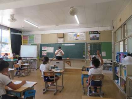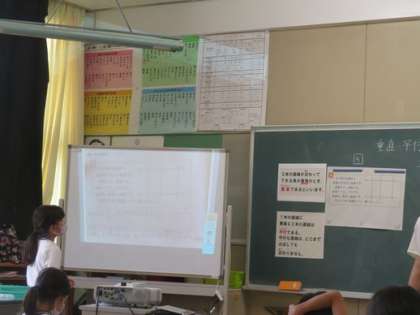 教育実習生 研究授業(算数) 公開日 2021/06/17 更新日 2021/06/17 お知らせ 4年生に来ている教育実習生さんの授業研究会がありました。落ち着いて授業をして、タブレットを活用して考えを発表していました。子どもたちの発言も多く、授業のふりかえりでも、今日学んだこと、わかったことを子どもたちが発表していました。