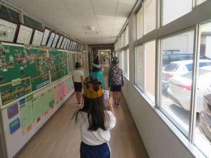 5年生、6年生の企画委員のこどもたちが、全校みんなで楽しめる「全校遊び」の準備を放課を使って行っていました。みんなが外で遊んでいる時間を使って、みんなが楽しめるようにがんばっている企画委員の子どもたちです。