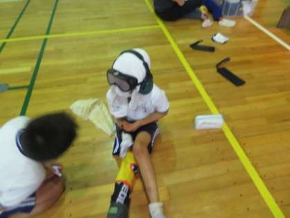 本日の3時間目、4時間目に社会福祉協議会のたくさんの方を講師に迎えて、福祉実践教室を行いました。内容は高齢者疑似体験を行い、実際の高齢者の方の感じを体験しました。体験後に「自分たちはどうしていけばいいのだろう」と考えていました。