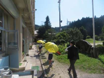 2年生の子どもたちが授業で書いた暑中見舞いを郵便局に出しに行きました。朝から気温も高く、かさを指してマスクをはずして熱中症対応をして出かけました。心のこもった手紙が届きますように。