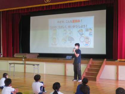 明日から夏休みです。本日の4時間目に全校で集まって「夏休み前集会」を行いました。校長の話は「夏休み、好きなことをとことんがんばろう」でした。生徒指導からの話は規則正しい生活、安心安全に注意しようというものでした。出校日、全員の笑顔を先生たちみんなで待っています。