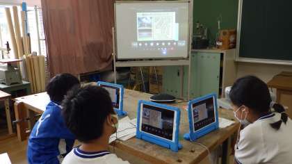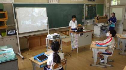 昨日、第1回挙母小学校交流会をオンラインで行いました。両校とも3つのグループに分かれて、自己紹介、学校紹介等を行いました。敷島小学校の子どもたちは、それぞれの班で学校、敷島小学区の紹介をプレゼンテーションソフトを利用して発表していました。
