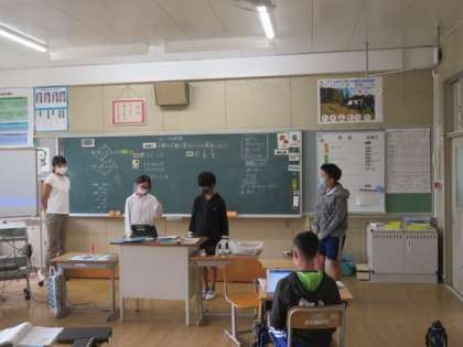 6年生の算数の時間にグループで話し合ったことを説明していました。「ここまで分かりましたか」と聞き手の反応をみながら説明をしていました。伝え上手・聴き上手な子どもたちを育てていきたいです。
