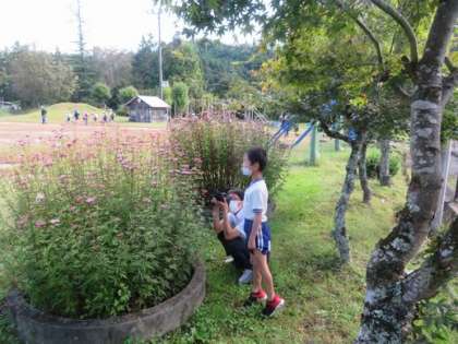 10月4日、地域の方が植え、育ててくださっている校庭のフジバカマについに「アサギマダラ」がやってきました。子どもたちを大喜び、委員会の子どもは「今日のクイズにしてみんなに知らせてあげよう」とはりきっていました。