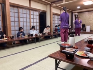 夕方、みんな元気に旅館に到着。荷物を整理してから夕食です。おいしくいただきました。今からお風呂です。