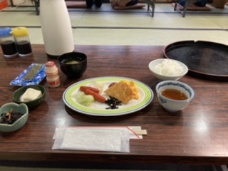 修学旅行2日目、子どもたちはみんな元気です。朝ごはんも食べ出発の準備に入ります。天気は晴れています。