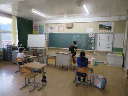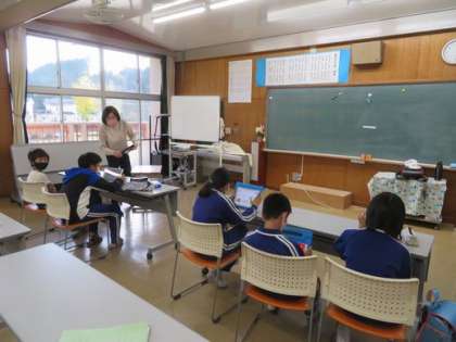 健康委員会では姿勢と歯磨きの動画を作成していました。子どもたちは委員会活動でも学習用タブレットを利用しています。