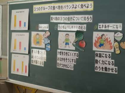本日の3時間目、4時間目に3・4年生が旭中学校の栄養教諭さんに講師にきていただき、「3つのグループの食べ物をバランスよく食べよう」という授業を行ってもらいました。給食のメニューにも書いてあることを教えてもらいました。バランスのいい食事について考えていけるといいです。