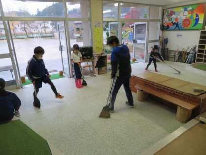 掃除をがんばる敷島っ子たち