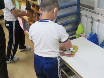 2年生の子どもたちが地域に住む「木のおもちゃづくり名人」を講師に招き、木で作ったおもちゃで遊びました。子どもたちは朝から5時間目のこの授業が楽しみだったようでとてもいい顔をしていました。