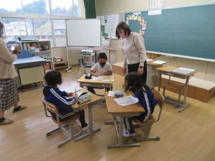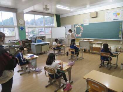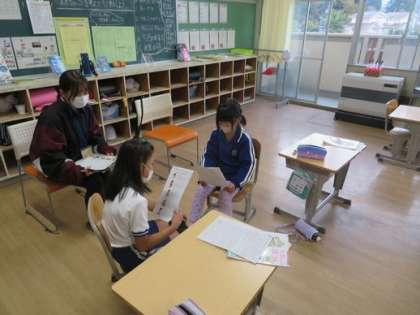 3年生で「せいかつとけんこう」という保健の授業を行っています。どんな生活をすると健康になれるのかをグループで意見交換をしあっていました。今日は旭地区の小中学校の保健の先生も授業を見にきてくれました。