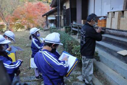 普賢院と風神社と地蔵堂で学ぶ 公開日 2021/11/30 更新日 2021/11/30 特色ある学校づくり推進事業 本日3年生がふるさと学習で押井地区の普賢院と風神社、東萩平の地蔵堂に校外学習に出かけました。地域講師から建てられた経緯を教えていただいたり、お参りをさせていただきました。大事にされてきたこと、地域の歴史について知ることができました。