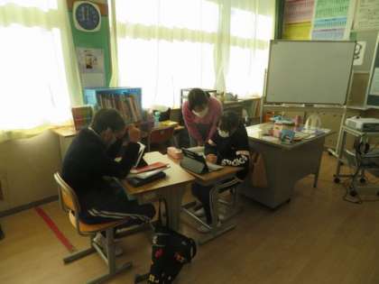 6年生の国語の時間に「町の未来をえがこう」という単元があります。6年生の子どもたちは、ふるさと学習で学んだことを生かしてプレゼンテーションを作成していました。学習用タブレットもすっかり教具として活用しています。