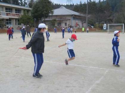 今年最後のなわとび朝活動、なかよし班でがんばっていました。「先生見ていてください」とできるようになったことをうれしそうに見せてくれます。冬休みに練習してできる技を増やしてくることでしょう。がんばれ!敷島っ子たち!