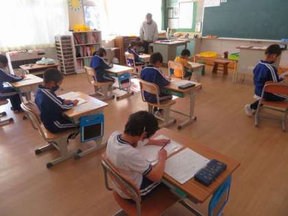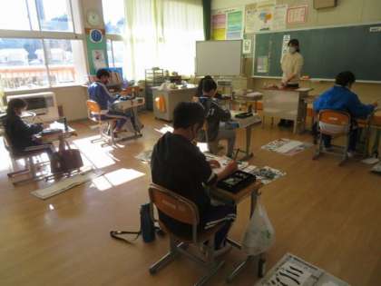 本日3時間目、4時間目は書き初め大会でした。子どもたちは冬休みにがんばってきた成果を出せるように集中してがんばっていました。