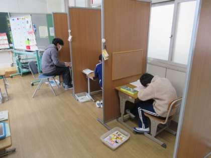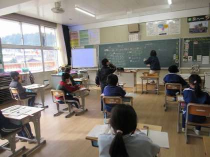 教室を回っていると6年生は発表ノートを使って自分の考えを記入していました。4年生は算数の授業で表を使って発表する授業を行っていました。さくら学級では、個にあった内容を取り組んでいました。なわとびの後でしたが、切り替えをして授業をがんばる敷島っ子です。