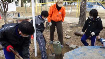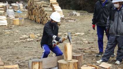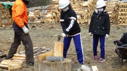 6年生のふるさと学習のまとめとして、間伐材を使ってできることを行いました。学校には間伐材を使ったイスの作成、また地域では実際に巻きわりの体験をさせていただきました。地域講師の方に教えてもらいました。