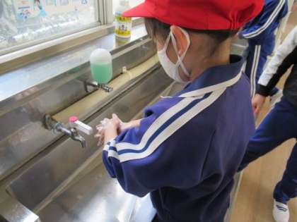 練習の後はしっかりと手洗いをしています。